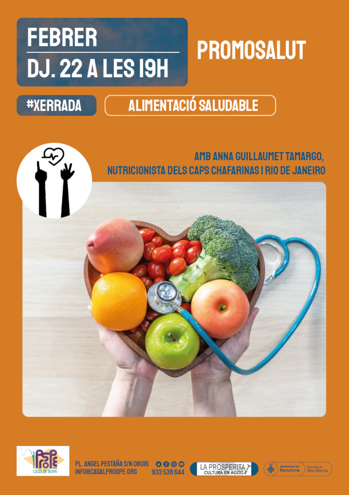 A càrrec d'Anna Guillaumet Tamargo, nutricionista dels CAP Chafarinas i Rio de Janerio. Entrada lliure fins a completar aforament. Organitza: PromoSalut