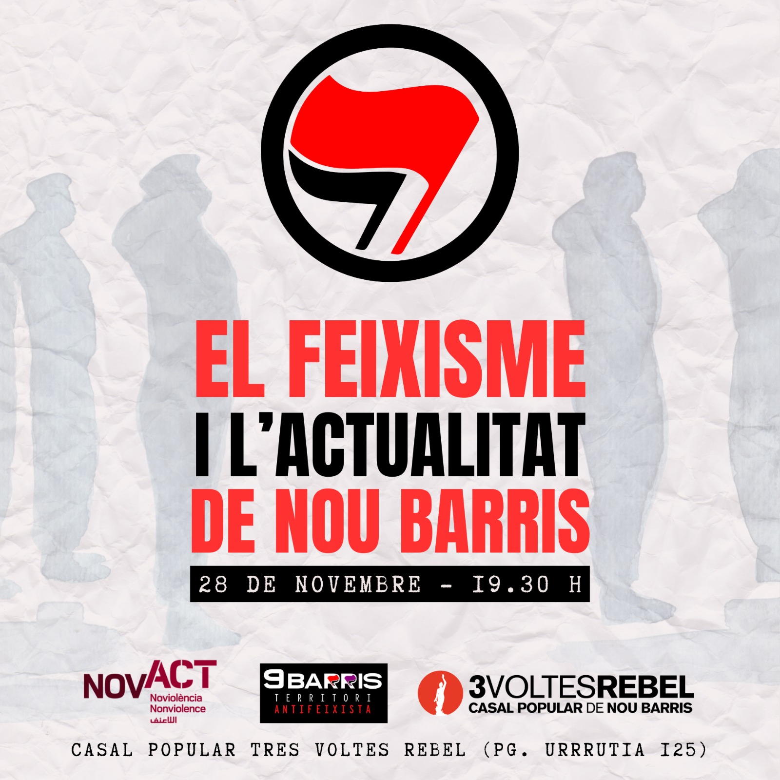 Es presentarà l'informe elaborat per NOVACT sobre la infiltració de l'extrema dreta a la Zona Nord de Nou Barris. A continuació, l'objectiu és que participin veïnes, col·lectius i equipaments de 9B per tal d'aportar informació sobre la realitat de cada barri. Finalment, es recolliran propostes d'acció col·lectiva per actuar davant les expressions del feixisme identificades. …