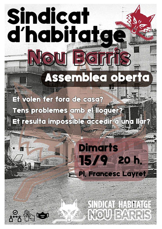 * Si tens problemes d’habitatge, et vols solidaritzar i/o organitzar-te amb el Sindicat, ens reunim tots els dimecres a les 17.30h al Casal 3 Voltes Rebel (Passeig Urrutia, 125). També ens pot contactar a: habitatge9b@gmail.com o en xarxes socials: @habitatge9b.