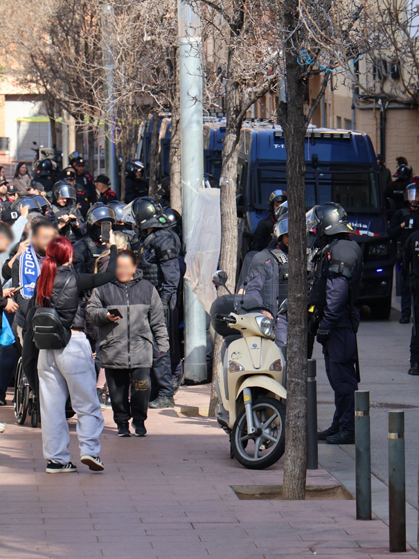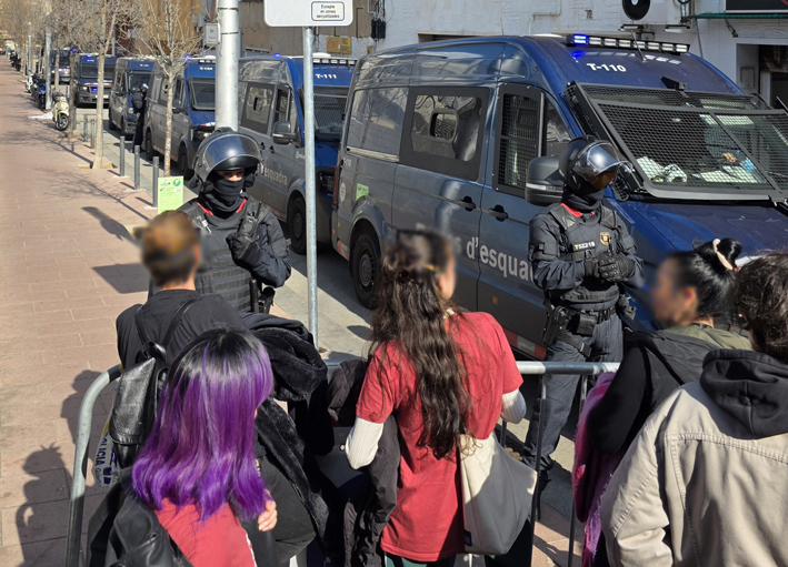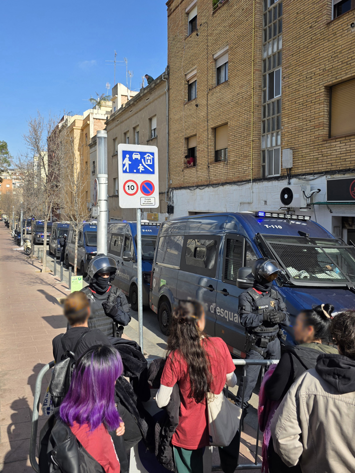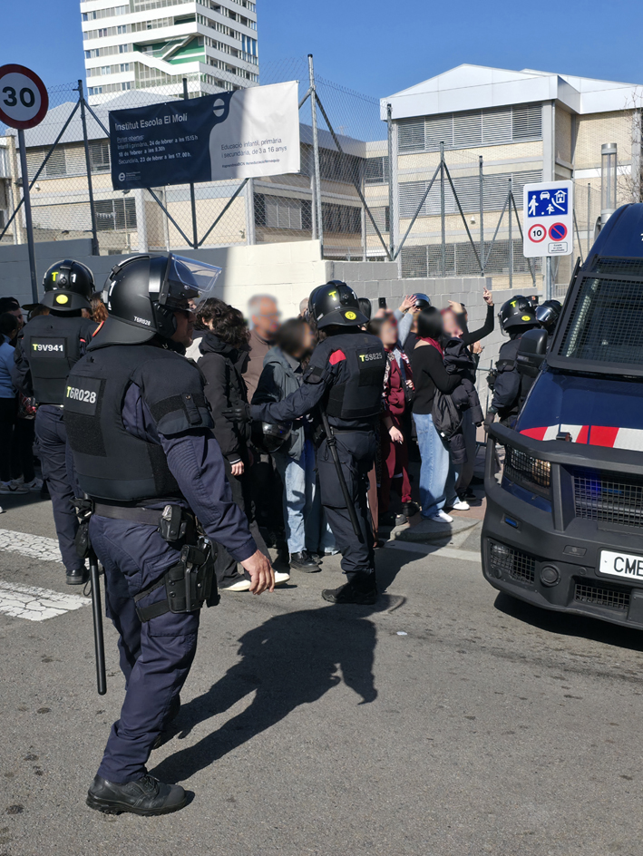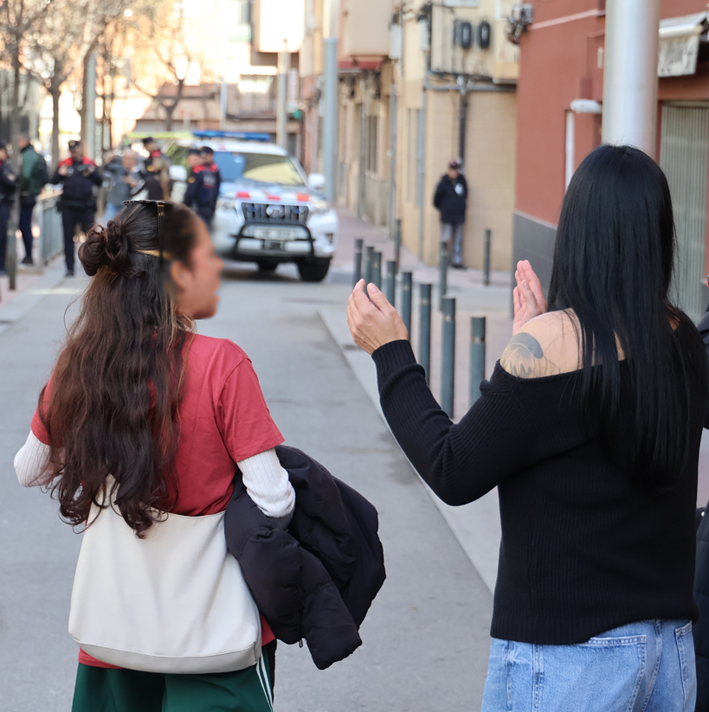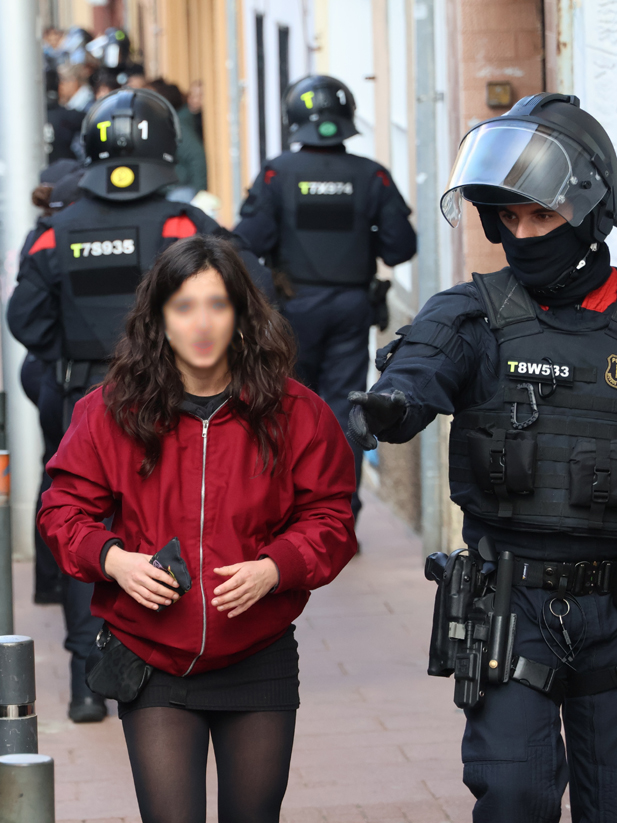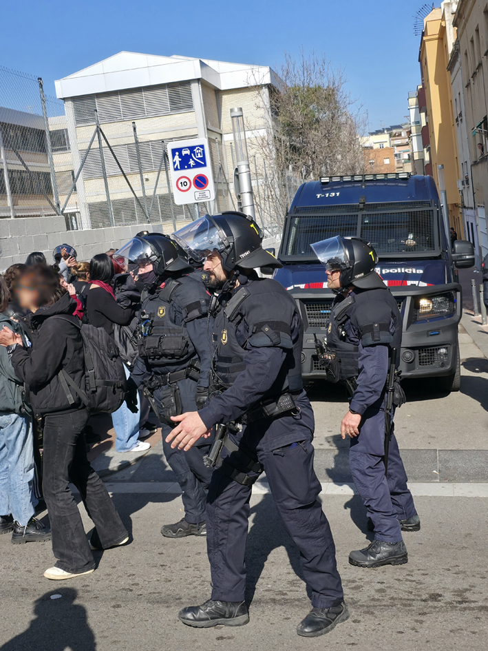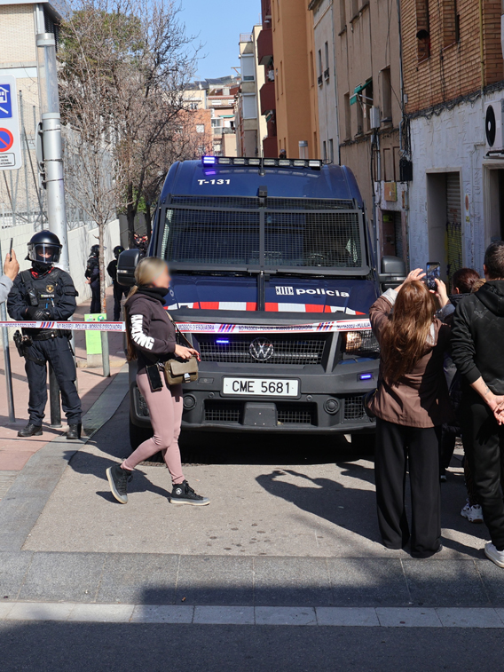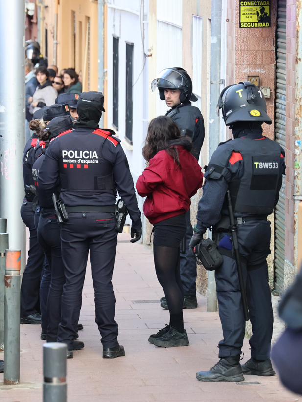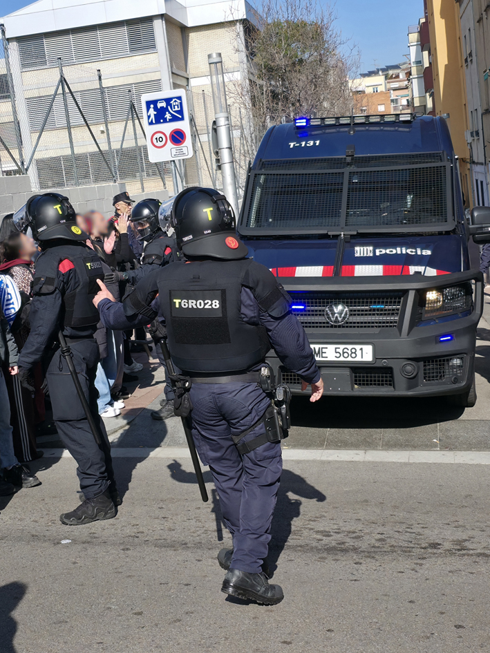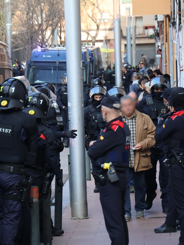 Un carrer tallat. Una escola pública a pocs metres. Criatures mirant per la finestra. Vuit furgons d’antiavalots desplegats des de primera hora del matí. I, al centre de tot, una família que perd la casa.